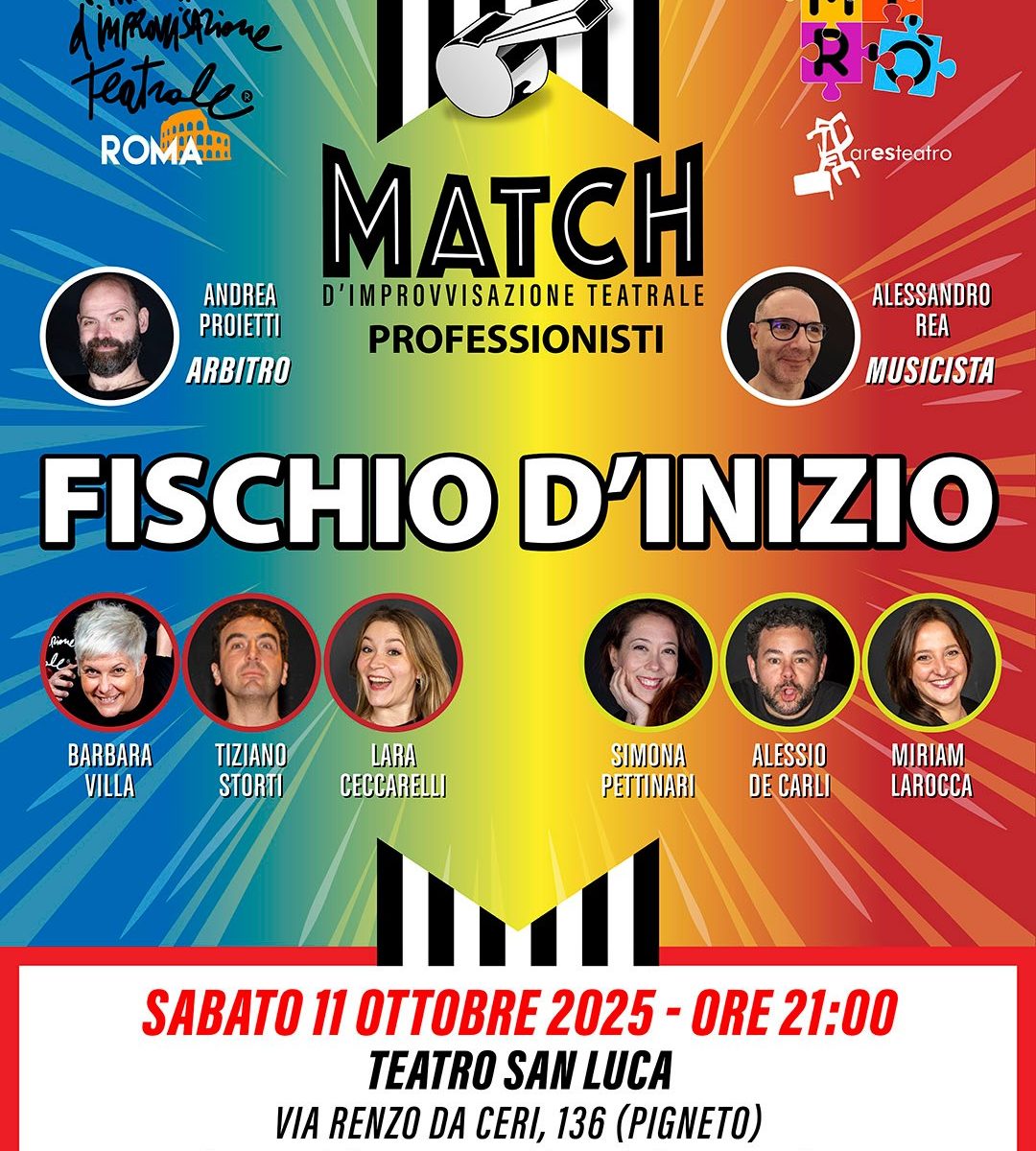 Sabato 11 Ottobre, FISCHIO D’INIZIO: PRIMO APPUNTAMENTO DELLA STAGIONE! Match d’Improvvisazione Teatrale categoria Professionisti